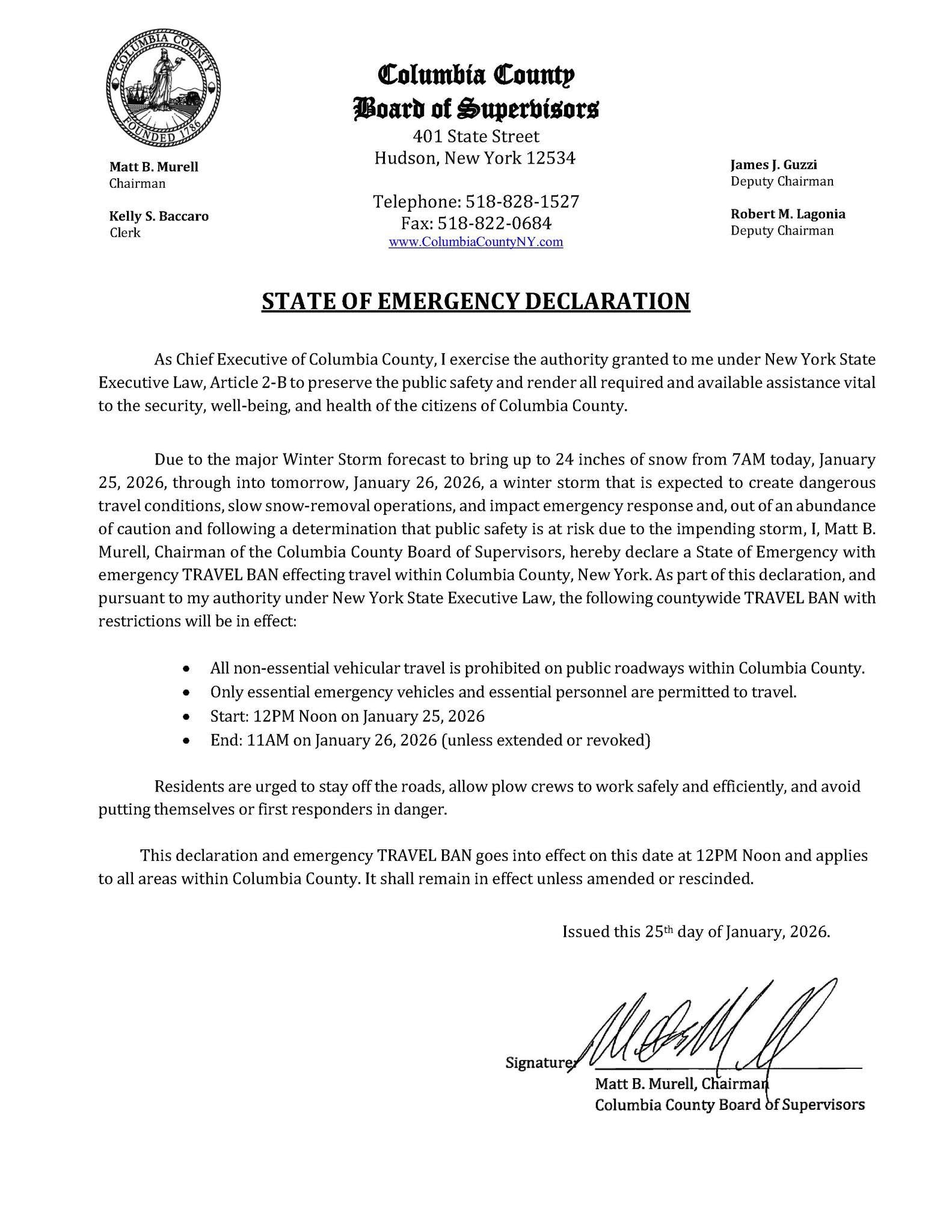 Special Town Board Meeting: There will be a special town board meeting on Thursday January 29th at 1pm. The agenda and zoom link can be found in the agendas and meetings section on the towns website hillsdaleny.com